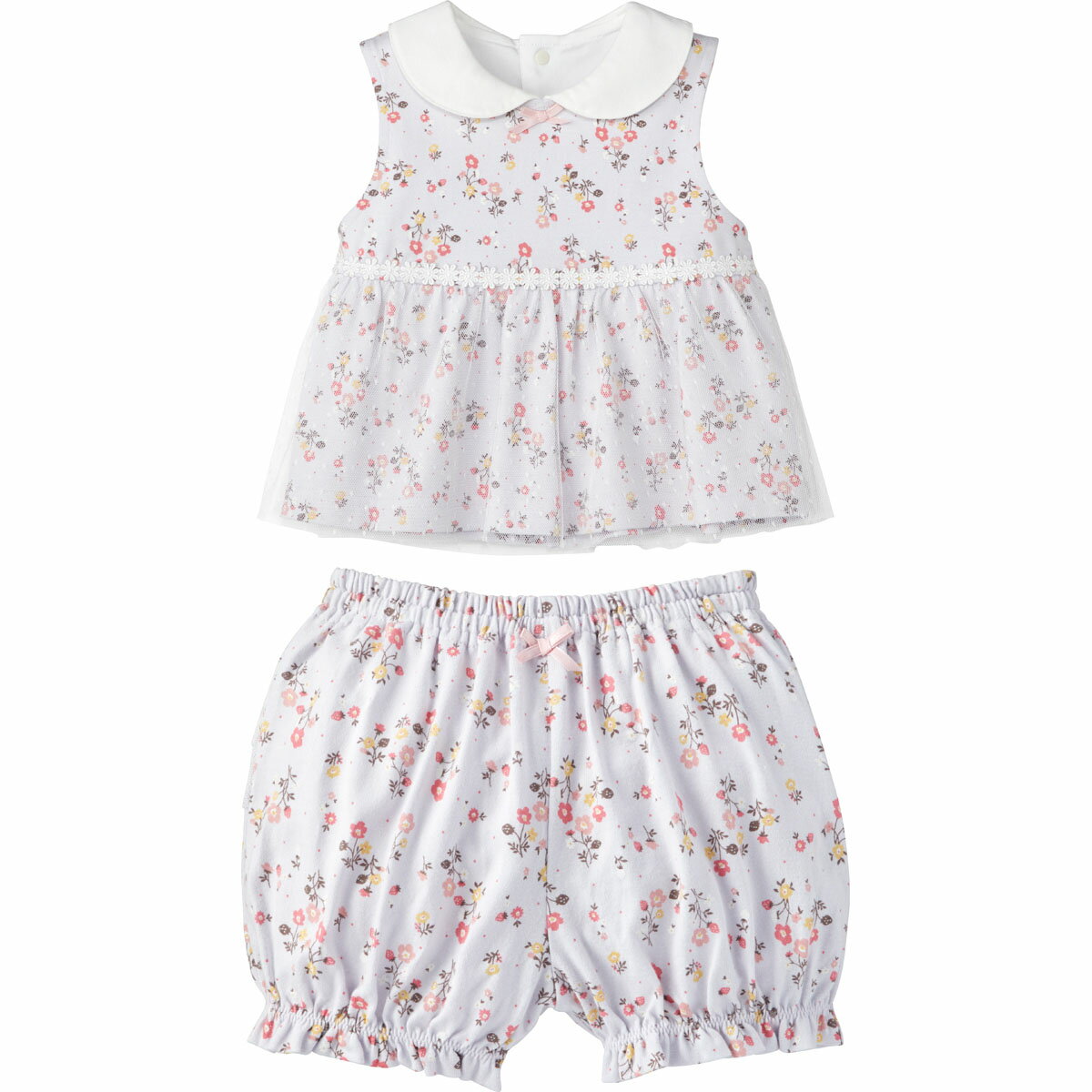 スタイ&ブルマセット(シックフラワー){女の子}《コンビミニ Combi mini》 【70cm 80cm】 | ベージュ ピンク お食事エプロン ボトムス おしゃれ 可愛い 出産祝い ギフト 赤ちゃん ベビー キッズ 子供服 ベビー服 スタイ セット ビブ 食事 離乳食 撥水 春 ベビーギフトセット