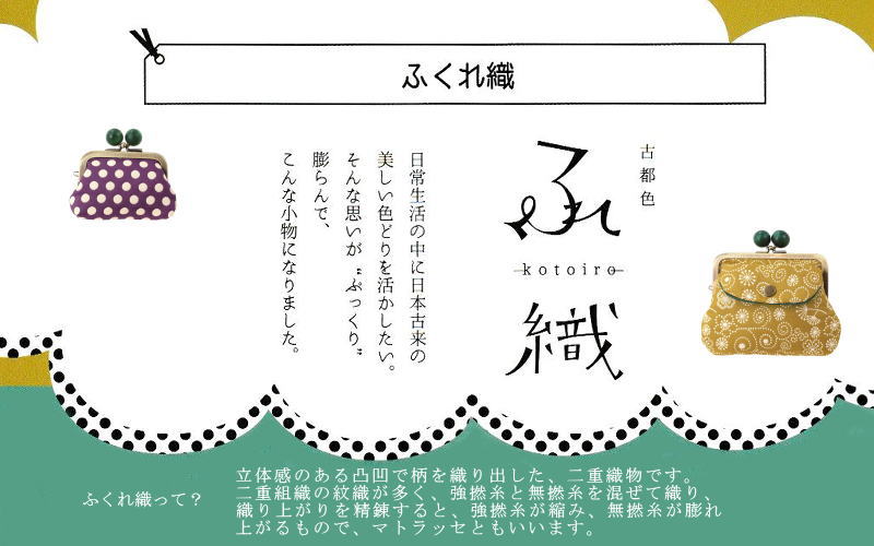 和柄がま口小銭入れ ミニサイズ ふくれ織りシリーズ 立体感のある凹凸で柄を織り出した二重織物です。